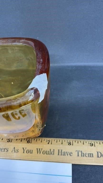 AMBER GLASS VASE, CHIPPED IN SEVERAL PLACES