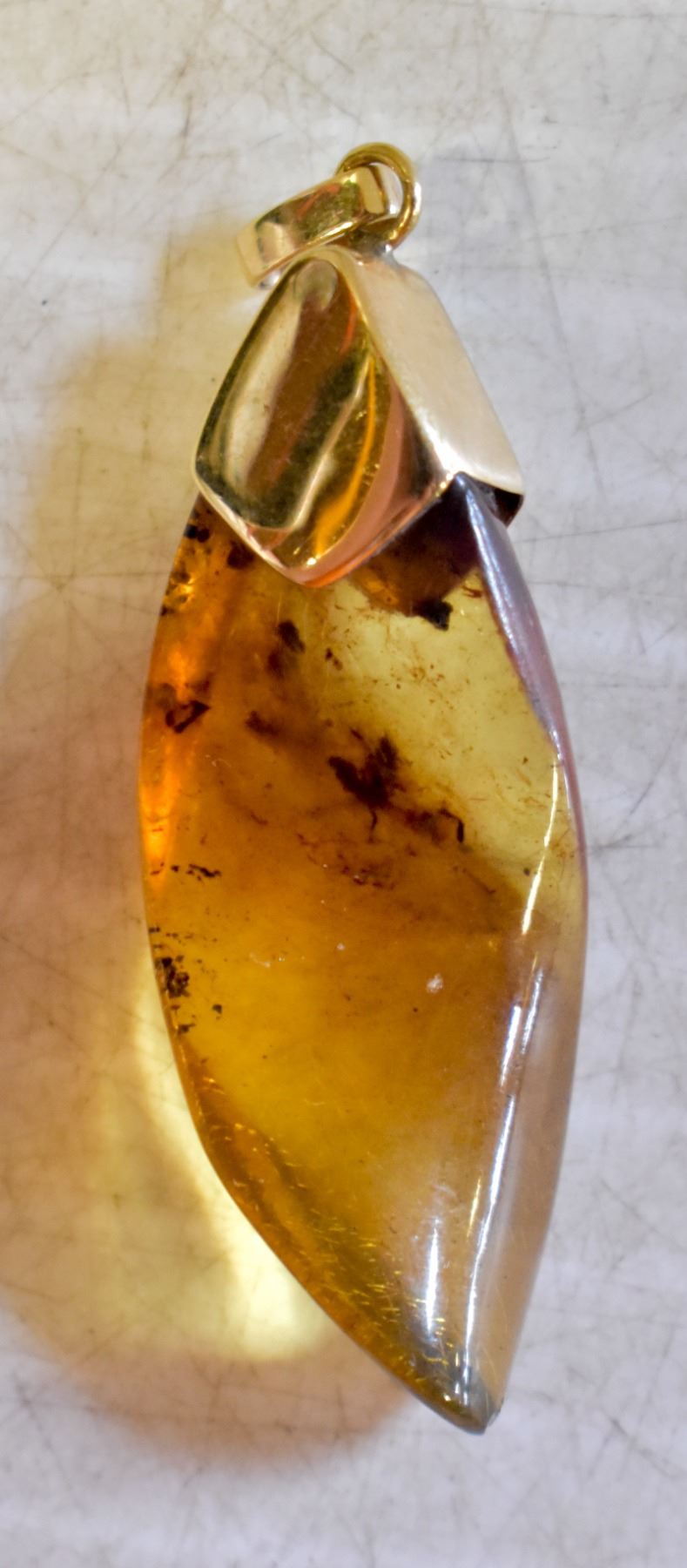 AMBER & GOLD PENDENT AMBER HAS DEBRIS NO CHAIN