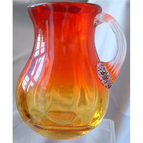 FINE AMBERINA CREAMER WITH REEDED HANDLE.SHARP BROKEN PONTAL.Ca1900