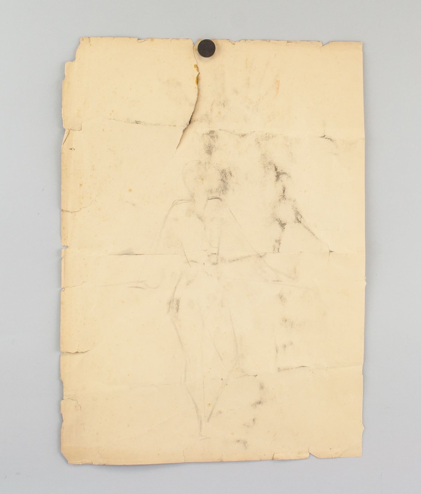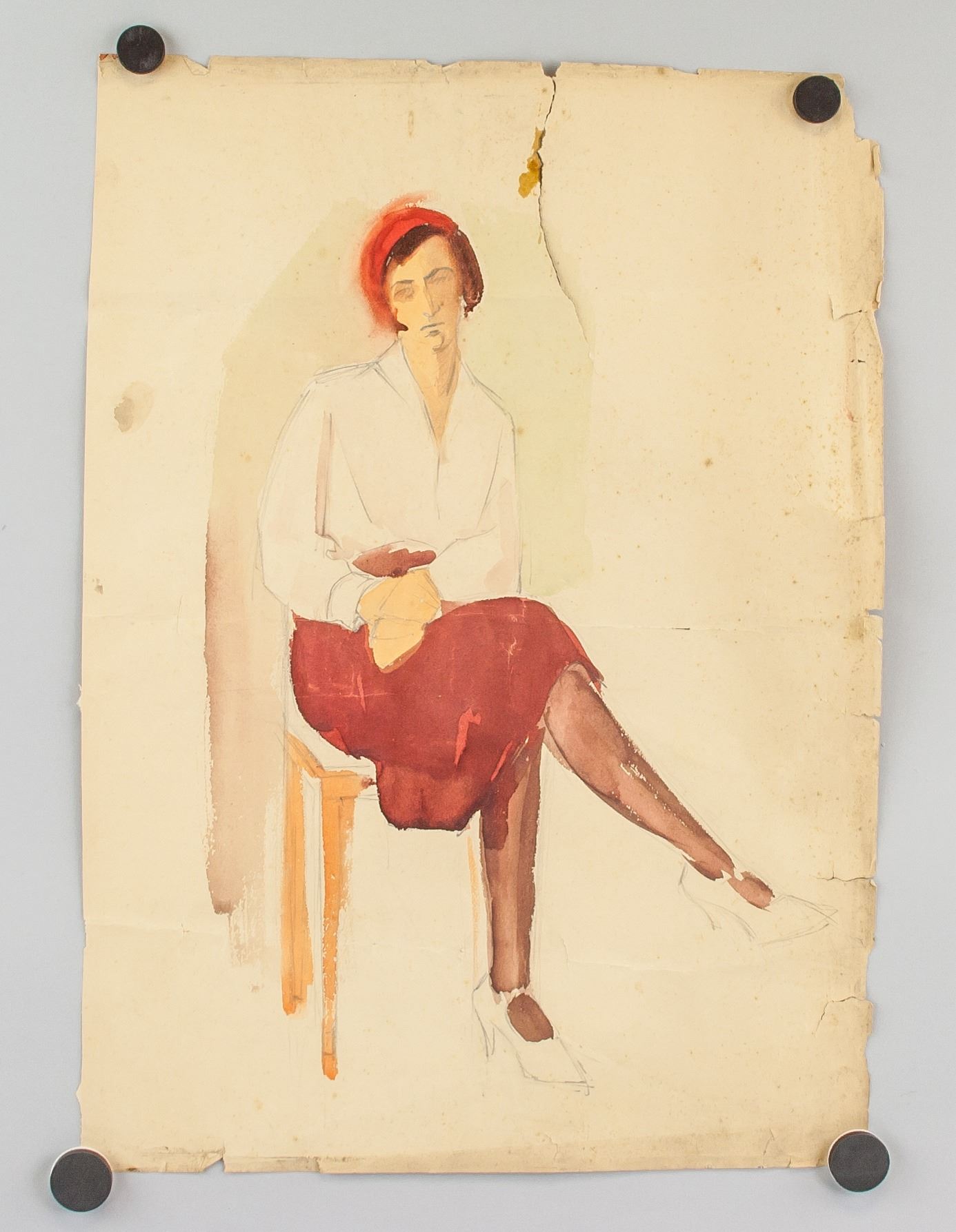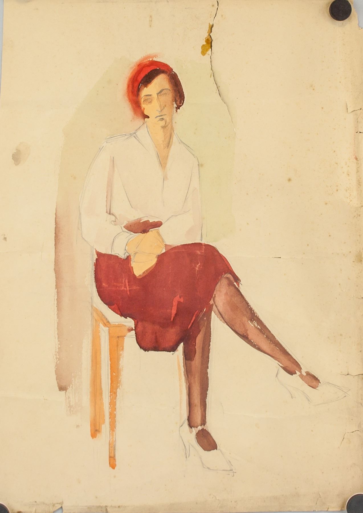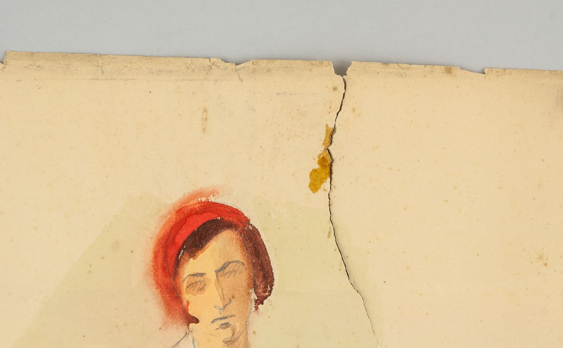 Watercolor on paper. Signed and attr. Amedeo Modigliani (Italian, 1884-1920). 18 x 12.5 in. (45.7 x 31.8 cm). Italian painter and sculptor Amedeo Modigliani is celebrated for his iconic portraits, which, with often mask-like faces and striking blue-eyes, have become iconic works of the early 20th century. Inspired by Existentialist philosophy and a rejection of his bourgeois childhood, Modigliani chose not to paint landscapes, like many of his contemporaries, instead using portraiture to explore both his own psychology and that of his subjects, who were typically fellow artists or lovers. Modigliani also painted highly sexualized female nudes that at the time, were daringly erotic. His style is figurative but also highly expressive, and his subjects are shown with quirks and asymmetries, recalling the portraiture of Paul Cézanne, whose work Modigliani greatly admired. Modigliani befriended Pablo Picasso after moving to Paris in 1906, and like Picasso, he drew inspiration from art of so-called "primitive" cultures, his work often resembling African or Pre-Columbian statuary.