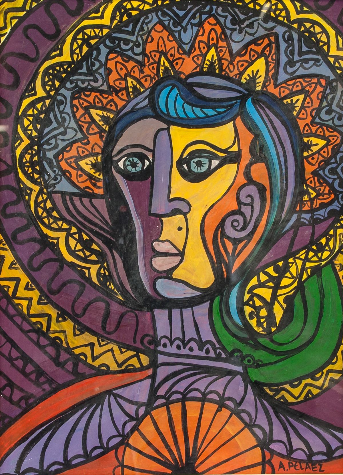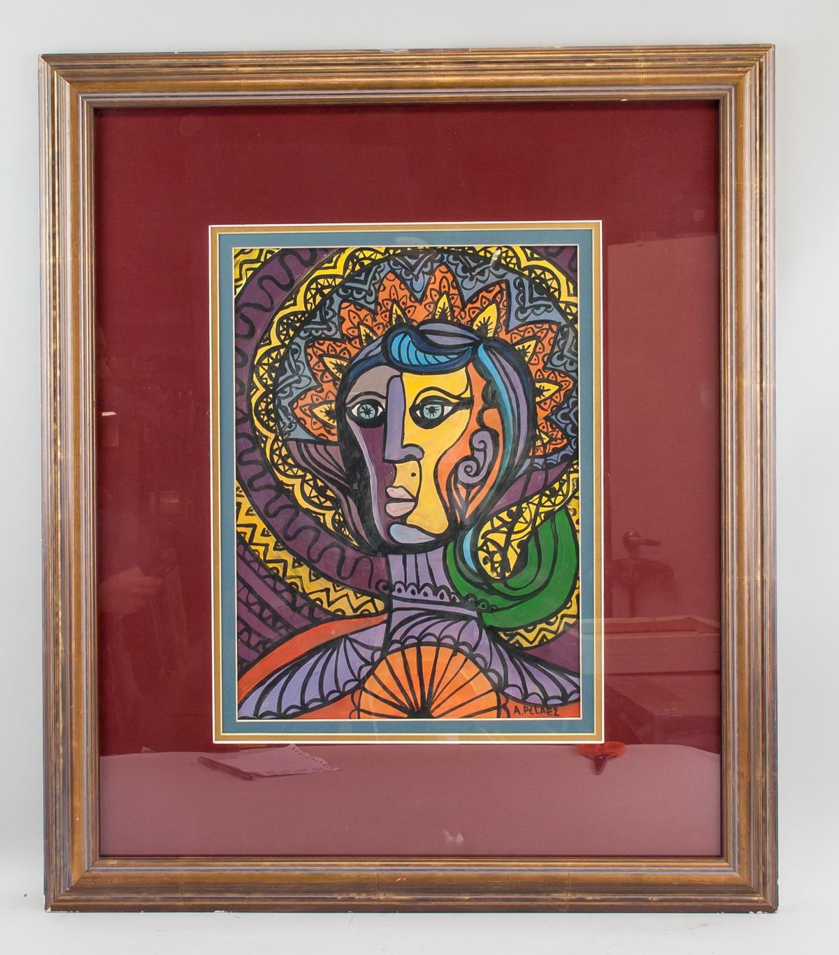 Gouache on paper, framed. Featuring a cubist portrait of a woman. Signed and attr. Amelia Palaez (Cuban, 1896-1968) on the lower right corner. 41 x 30 cm (framed 76 x 65 cm) (16 x 11.8 in). Amelia Peláez was a Cuban painter, best known for her graphic, colorful avant-garde paintings. Her work explores Cuban cultural iconography and history with a Modernist, representational aesthetic. Born on January 5, 1896 in Yaguajay, Cuba, Peláez studied at the Escuela Nacional de Bellas Artes San Alejandro, graduating in 1924 and exhibiting her work in regional spaces. She later received a government grant to study abroad, and went on to attend classes at the Art Students' League in New York and the École Nationale Supérieure des Beaux-Arts in Paris, where she met Russian constructivist painter Alexandra Exter. Peláez's prolific life and career is characterized by critical acclaim and professional achievement, including a prize from the Cuban National Exposition of Painters and Sculptors in 1938, and her participation in both the 1952 Venice Biennale and the 1951 and 1957 São Paulo Art Biennial in Brazil. The artist died on April 8, 1968 in Havana, Cuba, and is considered among the most prominent Cuban Modernists. PROVENANCE: Southern Ontario estate