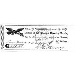 ELIHU PHINNEY Cooperstown, New York farmer. Legend has it that Abner Doubleday and a number of friends began playing baseball in Phinney's pasture in 1839 and the land was officially dedicated as Doubleday Field in 1939. D.S. 1p. 24mo., Cooperstown, Mar. 14, 1839 (the first year baseball was ever played!), Phinney's check in the amount of $490.40 made payable to Cherry Valley School. Very good.
