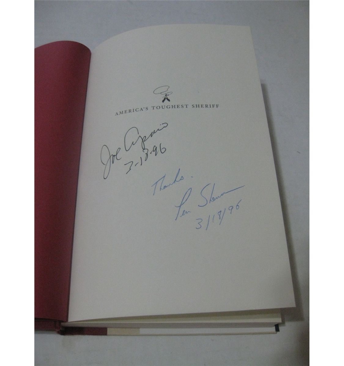 America’s Toughest Sheriff” hardcovers both signed by Joe Arpaio and co-author Len Sherman on the inside half-title pages in blue ink and black felt pen. Book is in Mint condition "Unread"