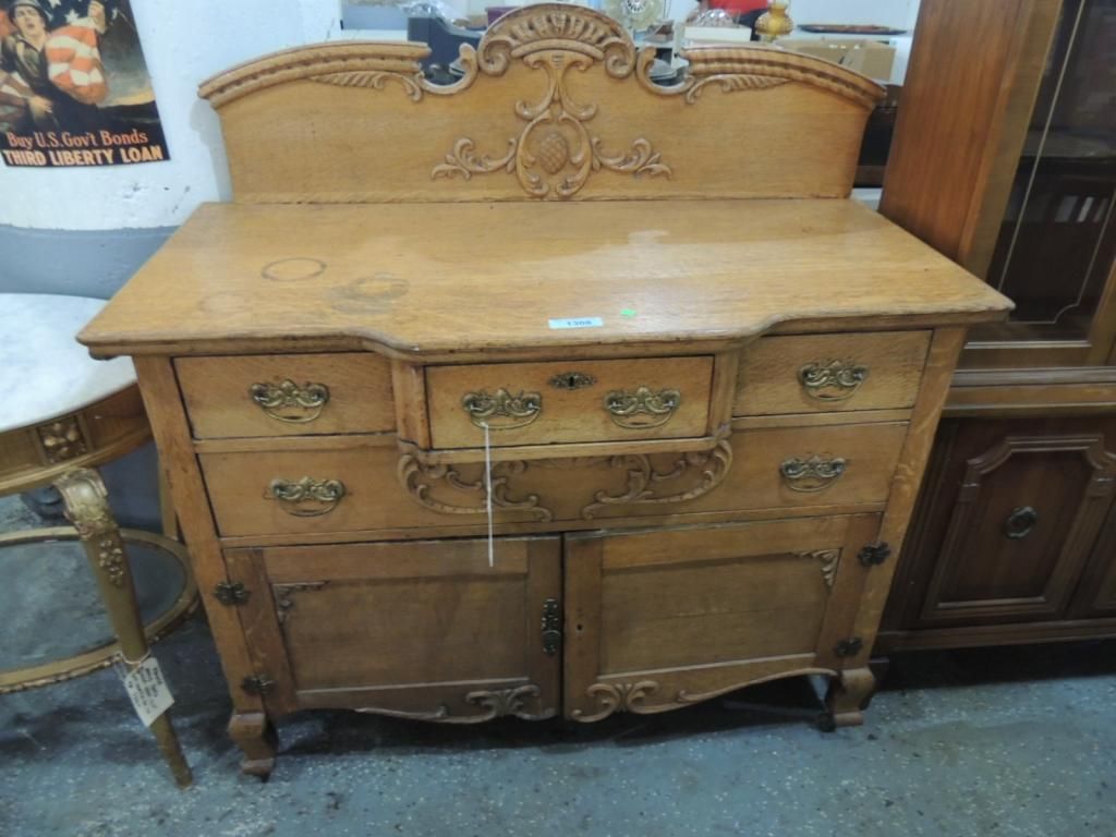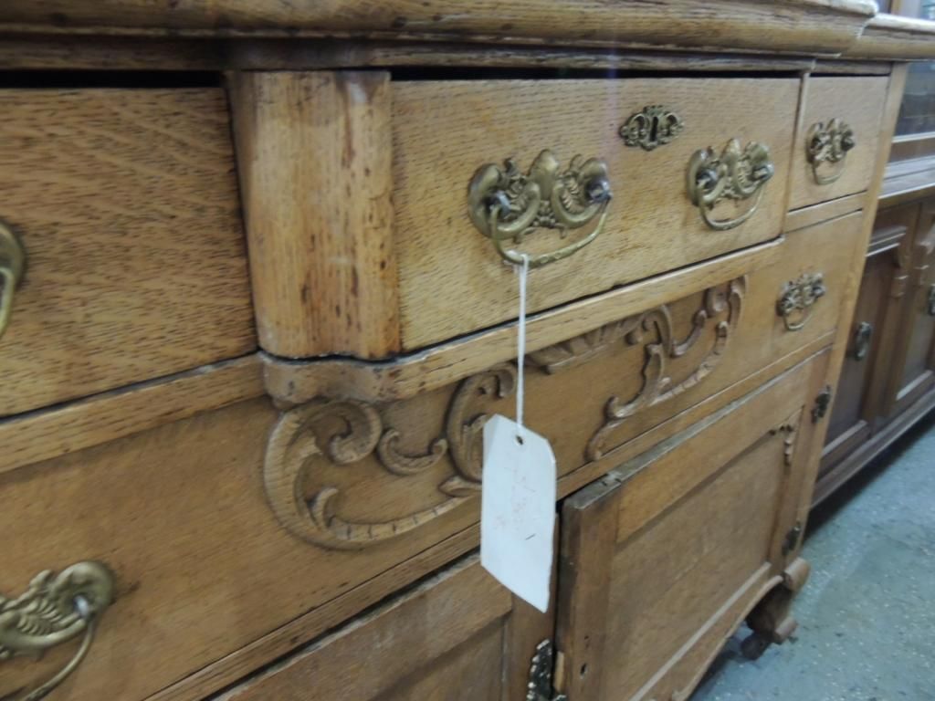 OAK HUTCH DRESSER KITCHEN CABINETS WRONG HARDWARE DECROATIVE WOOD WORK. AS SHOWN. SEE PHOTO FOR MORE DETIALS.