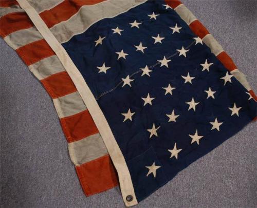 AMERICAN 45 STAR FLAG with embroidered stars, has repairs