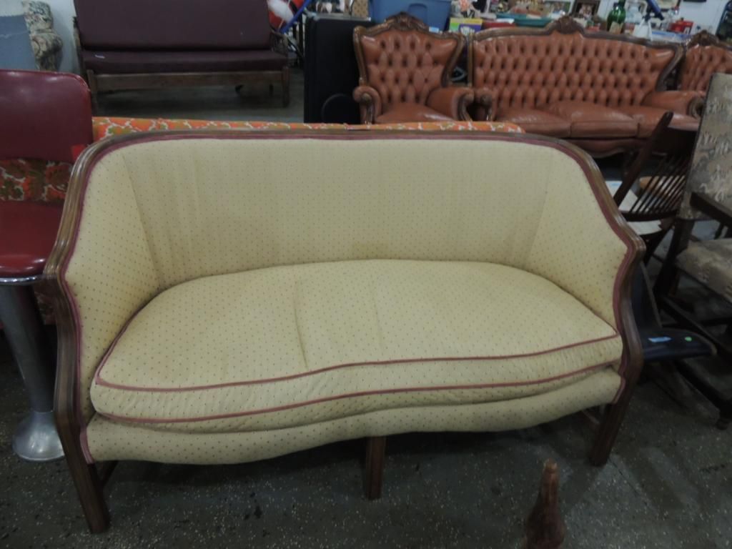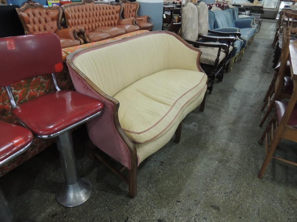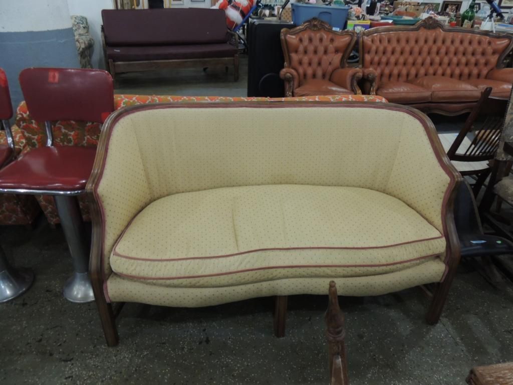 MAVUE AND CREAM YELLOW LOVESEAT SOFA AS SHOWN. SEE PHOTO FOR MORE DETAILS.