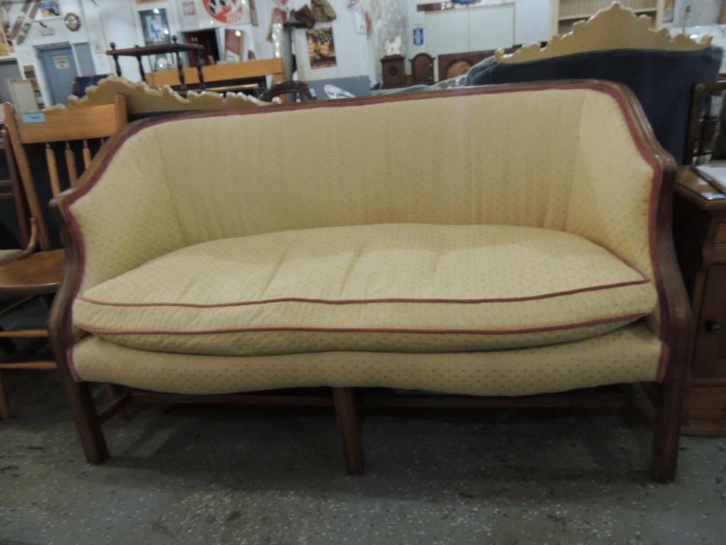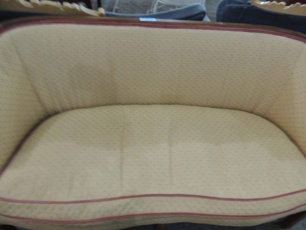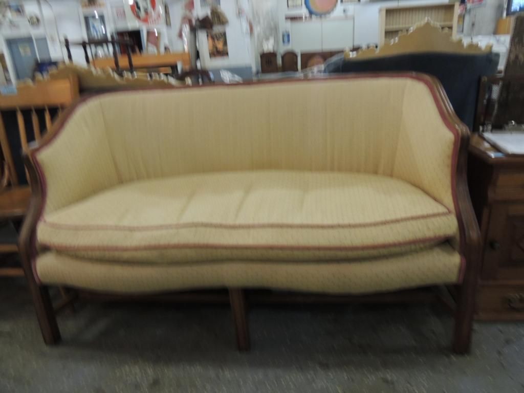 MAVUE AND CREAM YELLOW LOVESEAT SOFA AS SHOWN. SEE PHOTO FOR MORE DETAILS.