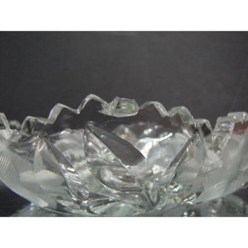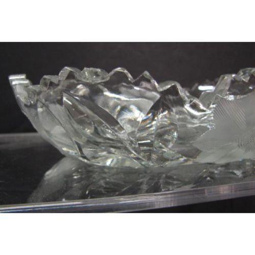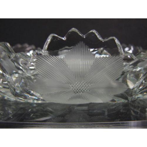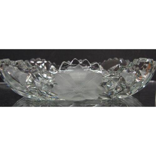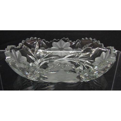 AMERICAN BRILLIANT INTAGLIO CUT GLASS MINT DISH. Sawtooth edge with intaglio cut floral decoration throughout. Shows two chips to sawtooth edge. 7” L
