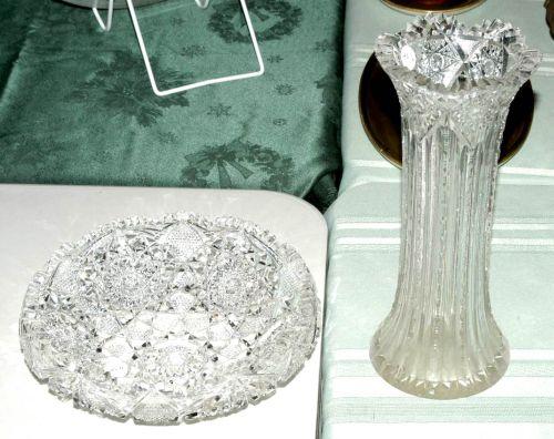 AMERICAN BRILLIANT PERIOD CUT GLASS BOWL, 10" diameter together with a CUT GLASS VASE, 11" high, bowl excellent, vase with some chips PACKING AND SHIPPING excl. insurance w/i Contintental U.S. $30 excluding insurance within Continental U.S.