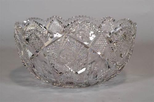 AMERICAN BRILLIANT PERIOD CUT GLASS PUNCH BOWL, 14" diameter, 7" high circa 1900, CONDITION: minor flecks to surface, no repairs. PACKING AND SHIPPING BY FAIRFIELD AUCTION WITHIN CONTINENTAL USA (excluding insurance) $65,