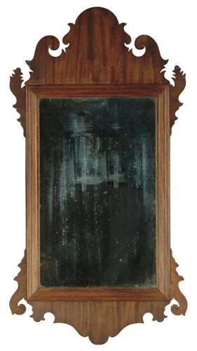 AMERICAN CHIPPENDALE MAHOGANY MIRROR. The carved fancy frame retains its original glass and backboards. Fourth quarter of the 18th Century. SIZE: 29-1/2” l. CONDITION: Very good. 9-27938