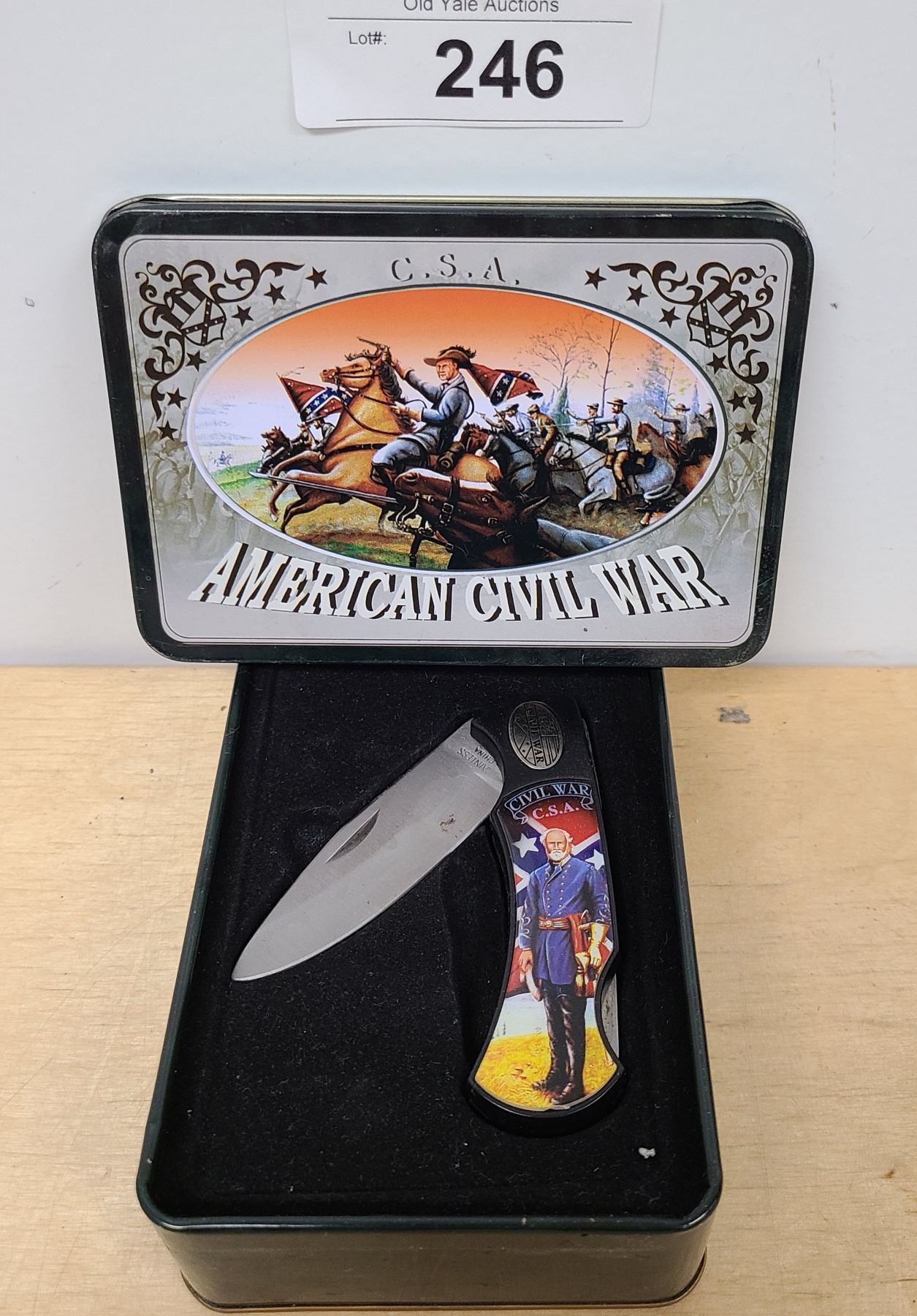 AMERICAN CIVIL WAR POCKET KNIFE IN COLLECTIBLE TIN