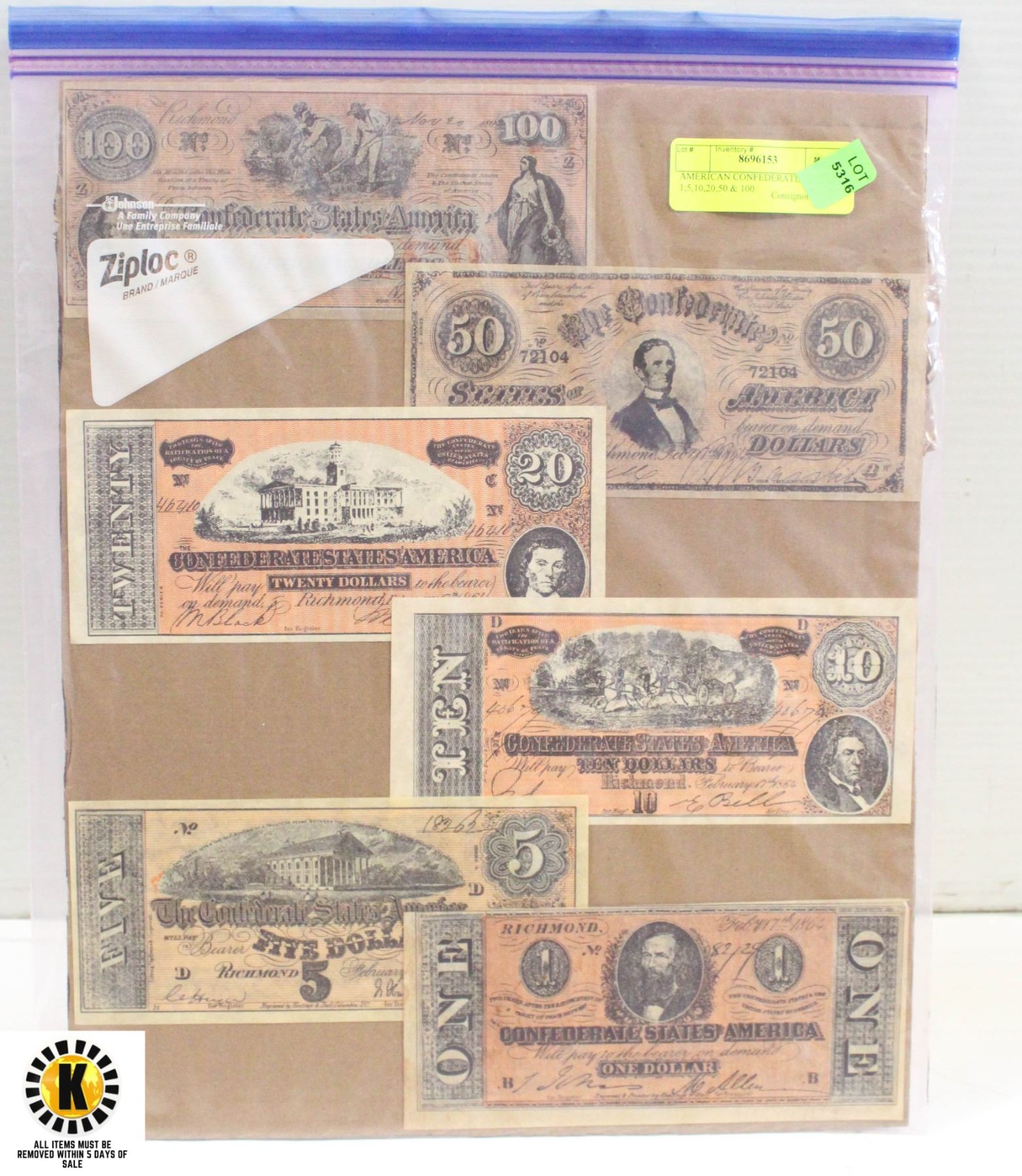 AMERICAN CONFEDERATE BILL SET 1,5,10,20,50 & 100