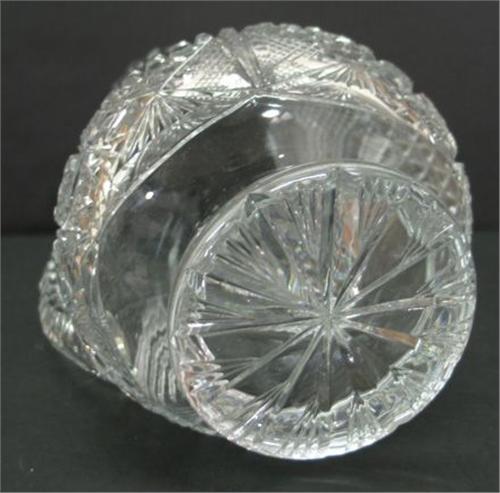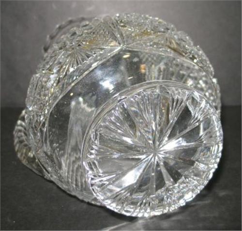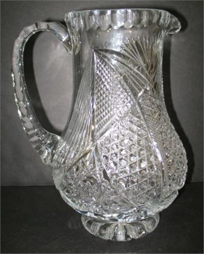 AMERICAN CUT GLASS PITCHER. Clear glass applied handle. 10” H