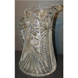 AMERICAN CUT GLASS WATER PITCHER. 9" H