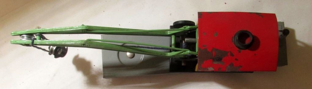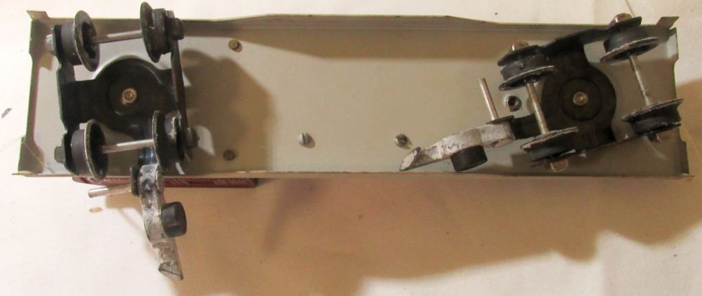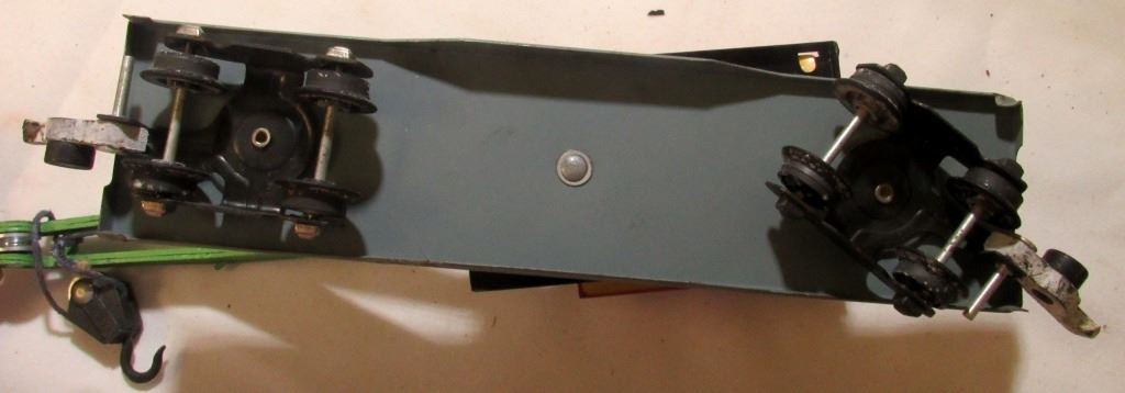 CAR 607. BOOM & WORK CAR HAS BOX. BOTH HAVE CHIPS AND SCRATCHES IN THE PAINT.