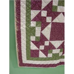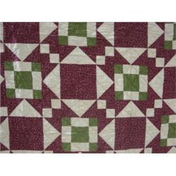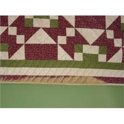 AMERICAN HAND SEWN QUILT. Block pattern. Slight fading to edges. 77" x 77"
