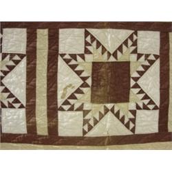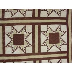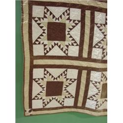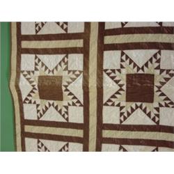 AMERICAN HAND SEWN SUMMERTIME QUILT. Block and star pattern with sawtooth design. Slight fading. 81.5" x 65"