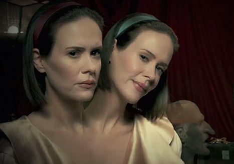 This is the Screen Matched Hero Severed heads of the conjoined twins with split personalities, Bette and Dot Screen matched in AMERICAN HORROR STORY FREAK SHOW!.