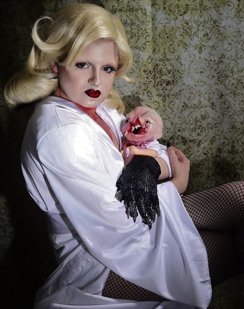 This is the Hero working Silicone Puppet of THE COUNTESS' son BARTHOLOMEW, used in Lady Gaga's arms when movement is seen, though some CGI is used as embellishment, Blinking for example.