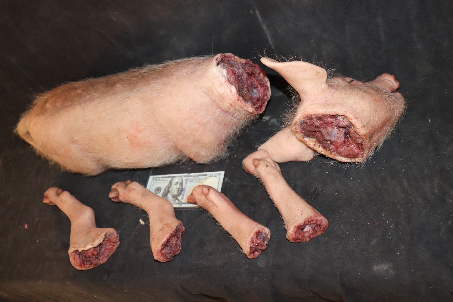 AMERICAN HORROR STORY ROANOKE SCREEN MATCHED CHOPPED UP PIG KEEPER QUALITY GORE PROP!