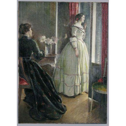 1 AMERICAN IMPRESSIONIST SCHOOL Looking Out the Window 48"x 35" oil on canvas, unframed. unsigned, excellent condition.