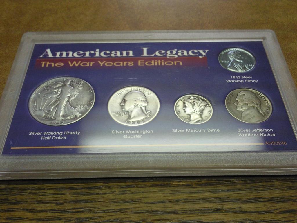 STEEL LINCOLN CENT, 40% SILVER WAR NICKEL, MERCURY DIME, SILVER WASHINGTON QUARTER, WALKING LIBERTY HALF DOLLAR