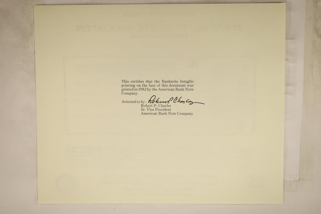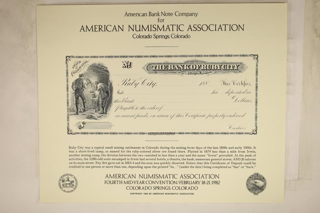 CARD WITH BANK NOTE INTAGLIO FACE OF RUBY CITY CERTIFICATE OF DEPOSIT BY THE AMERICAN BANK NOTE COMPANY