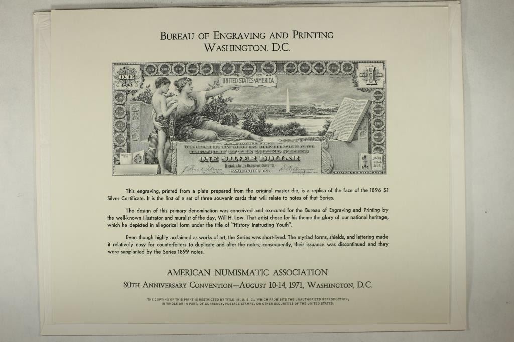 CONVETION 1971, WASHINGTON D.C. SOUVENIR CARD WITH ENGRAVING OF A REPLICA OF THE FACE OF THE 1896 $1 SILVER CERTIFICATE