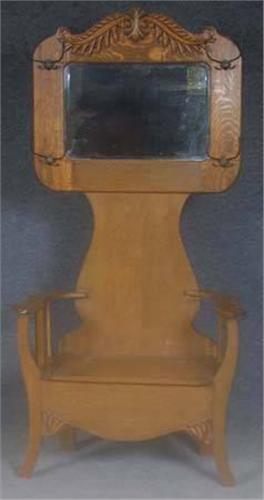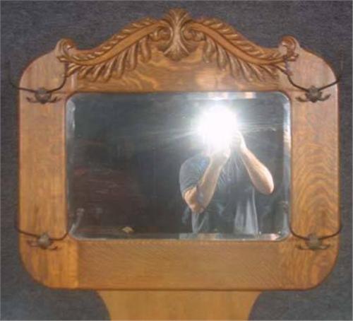AMERICAN OAK HALLTREE with beveled glass mirror circa 1915