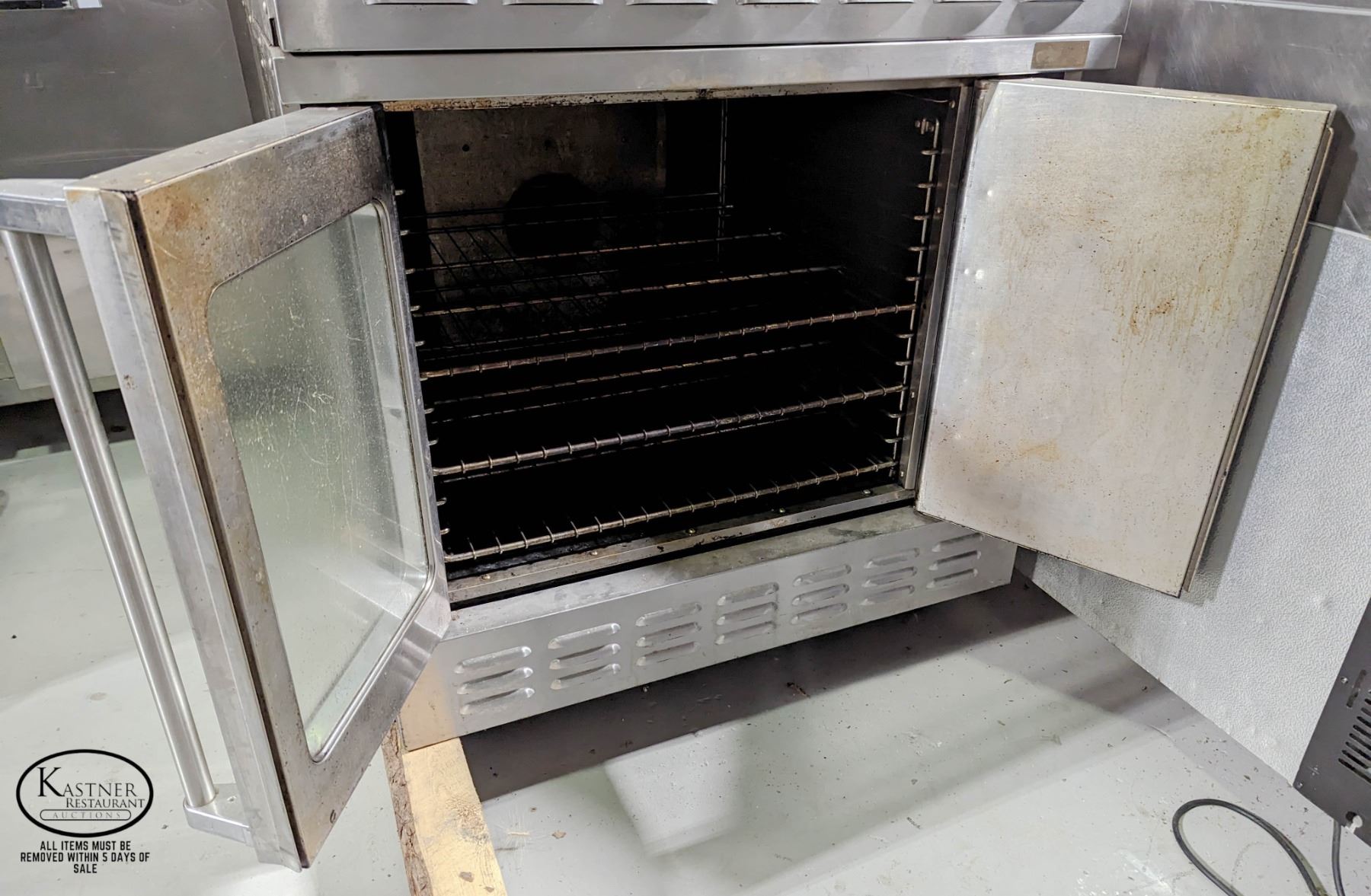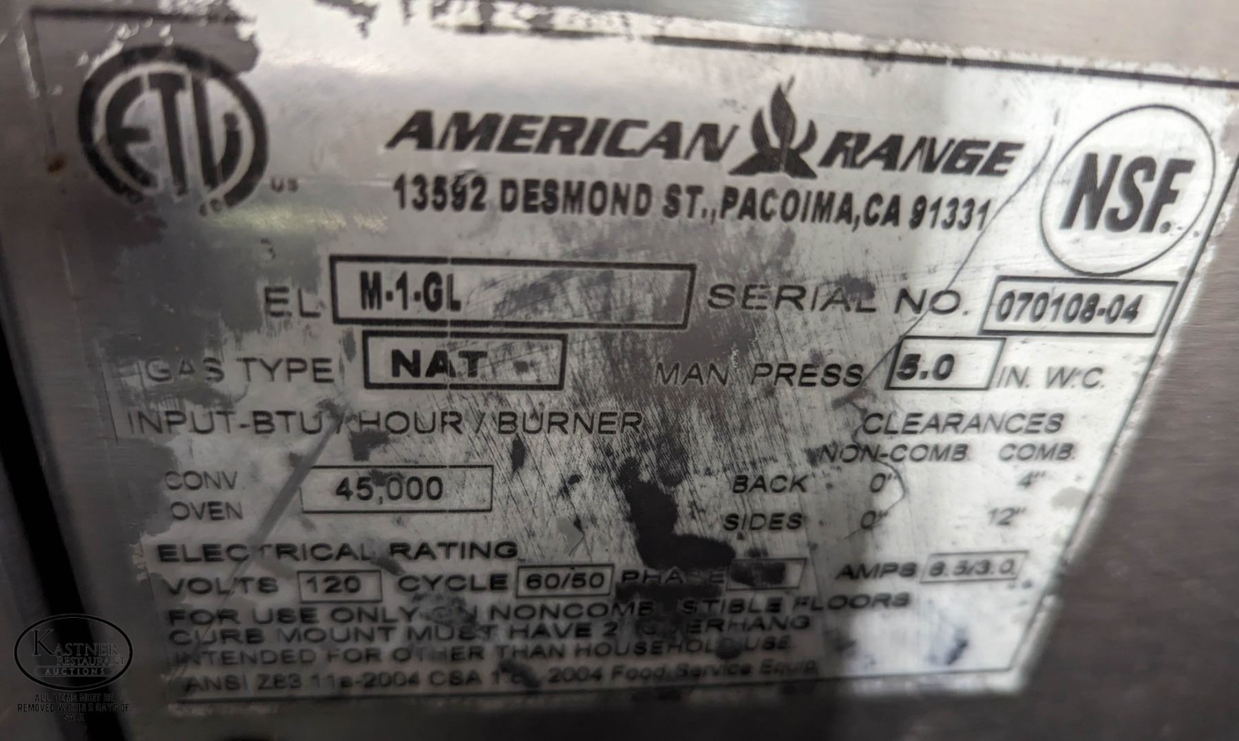 OVEN. MODEL: M-1-GL. SINGLE PHASE, 120V, 45000PTU PH. *ON CASTERS MISSING 1 CASTER. 40" X 35" X 74" **ALL ITEMS MUST BE REMOVED BY 4:00PM, JULY 21ST, 2023. ALL ITEMS REMAINING AFTER 4:00PM, JULY 21, 2023 WILL BE CONSIDERED FORFEITED WITH NO REFUNDS TO THE BUYER WHATSOEVER. ALL ITEMS IN THIS AUCTION ARE SOLD IN UNTESTED CONDITION, DUE TO THE NATURE OF ONSITE AUCTIONS, WE ARE UNABLE TO TEST ITEMS PRIOR TO THE AUCTION. ABSOLUTELY NO REFUNDS WILL BE CONSIDERED FOR THIS AUCTION UNDER ANY CIRCUMSTANCE. WE RECOMEND TAKING ADVANTAGE OF VIEWING ON JULY 16TH, FROM 10:00AM UNTIL 4:00PM. PICK-UP IS AVAILABLE FROM JULY 18TH, UNTIL JULY 21ST, 10:00AM TO 4:00PM.