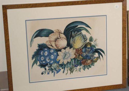 AMERICAN SCHOOL, 11"x14" w/c, floral still life, signed M. Curtis 1863, condition: minor toning, packing and shipping w/i continental USA $40 +  insurance