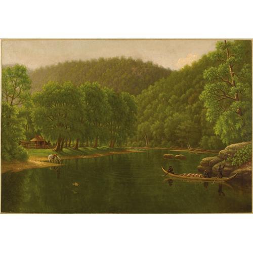 <B>AMERICAN SCHOOL</B></I> (Nineteenth Century)<BR><I>River Scene</B></I><BR>Oil on canvas<BR>22-1/8 x 32 inches (56.2 x 81.3 cm)<BR>Unsigned<BR><BR>Provenance:<BR>Private collection<BR><BR><BR><BR><b>Shipping:</b> Requires 3rd Party Shipping (<a target="_blank" href="http://www.heritageauctions.com/common/shipping.php">view shipping information</a>)