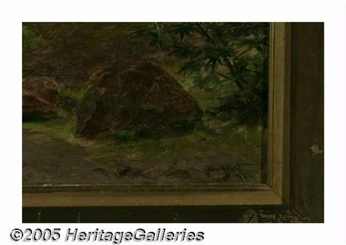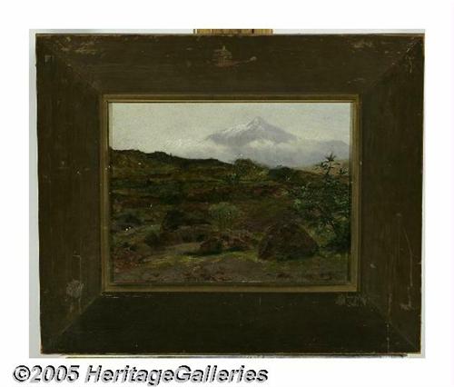 <B>AMERICAN SCHOOL (20th Century)</B></I><BR>Landscape with Distant Peak, 1904<BR>Oil on canvas laid down on board<BR>11.75in. x 15.75in.<BR>Signed lower right with initials 'B.G.W., 1904'<BR><BR>Condition Report: Canvas lifting off of panel, frame abrasion around edges, very small losses lower left<BR>