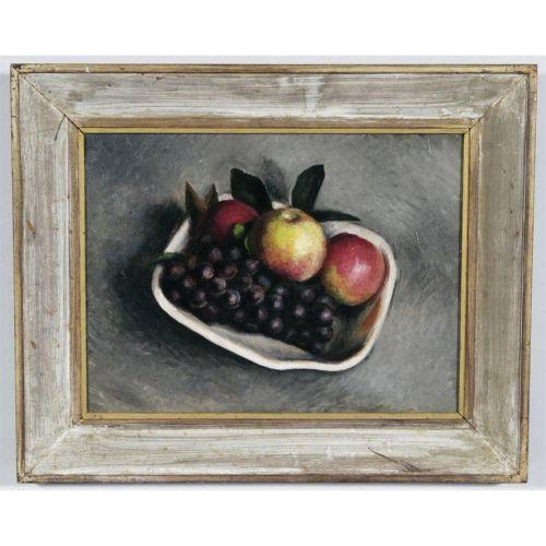 1 AMERICAN SCHOOL MODERNIST STILL LIFE 12"x 16" oil on canvas circa 1920 CONDITION REPORT: small patch and inpainting on right side in background, 1" diameter. PACKING AND SHIPPING (excluding insurance) by Fairfield Auction to points within the Continental U.S.A. and Canada (all other international must be handled by 3rd party shipper) $40.