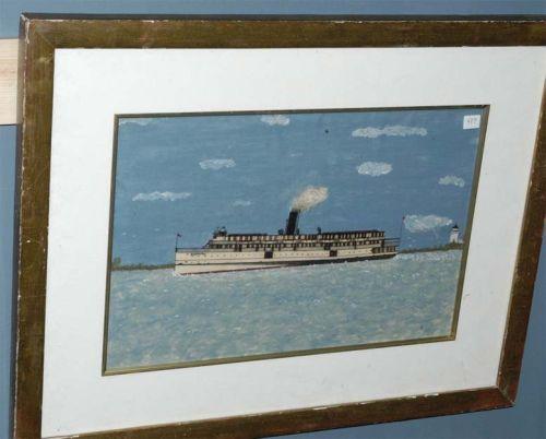 AMERICAN SCHOOL folky gouache of a steamboat 12"x17", packing and shipping w/i continental USA (excluding insurance) $35