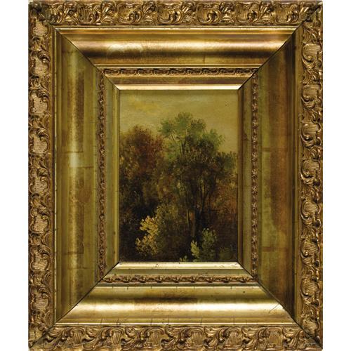 <B>AMERICAN SCHOOL</B></I> (Nineteenth Century)<BR><I>Landscape</B></I><BR>Oil on canvas laid on board<BR>7 x 5 inches (17.8 x 12.7 cm)<BR><BR>A small, but exceptionally detailed landscape with giltwood frame. <B>Condition Report:</B> Overall good condition.<BR><BR><b>Shipping:</b> Requires 3rd Party Shipping (<a target="_blank" href="http://www.heritageauctions.com/common/shipping.php">view shipping information</a>) <BR><BR><B>Impo