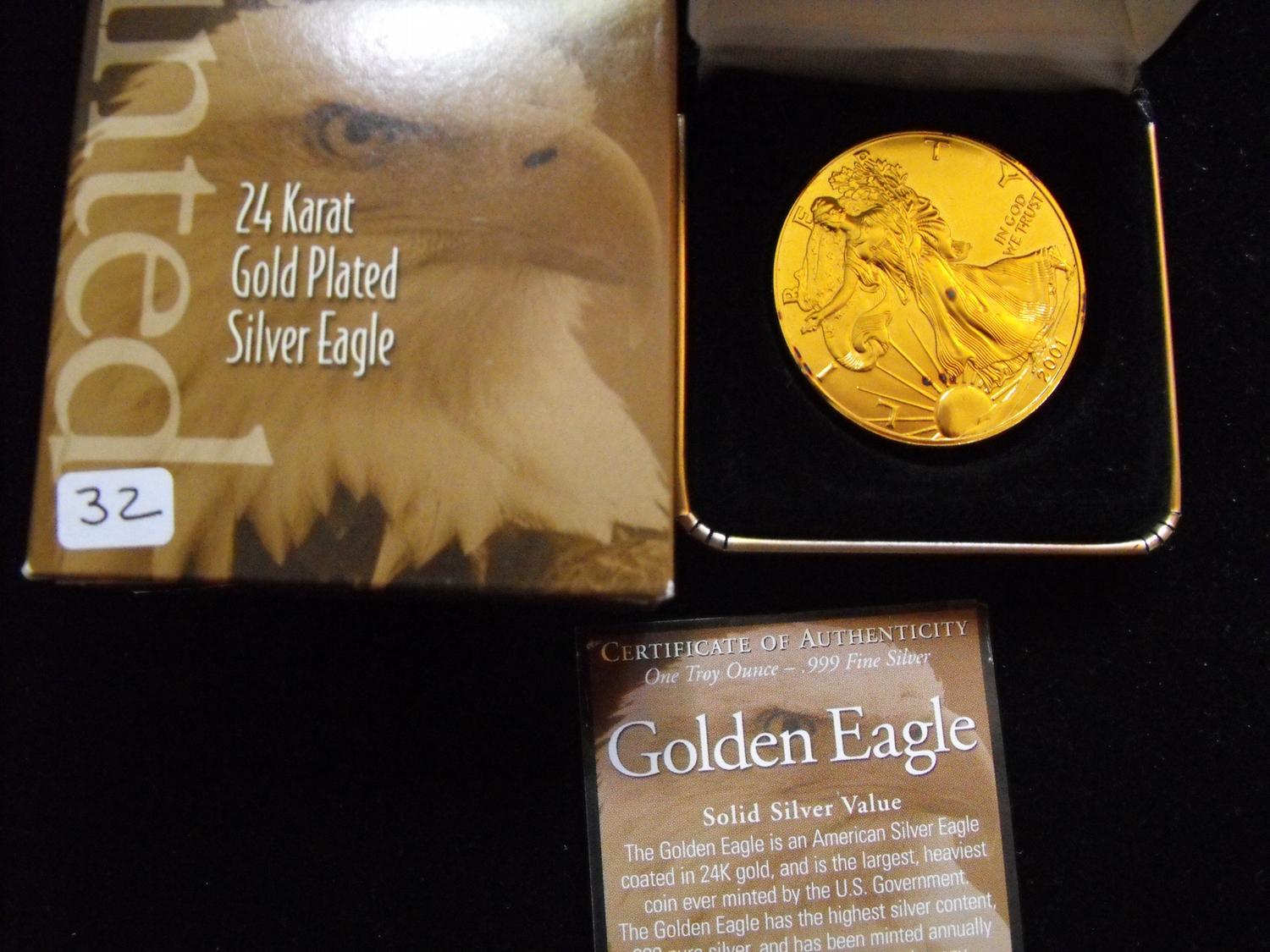 AMERICAN SILVER EAGLE GOLD PLATED 1 OUNCE OF PURE SILVER .999