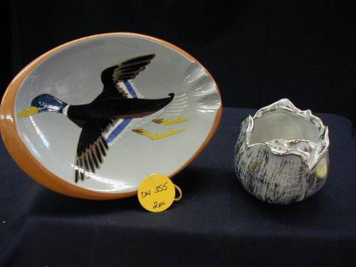 AMERICAN STANGL POTTERY INCLUDES (1) VASE 4 3/8in HND. PTD. COLONIAL SILVER 5144 EXCELLENT, (1) 11 3/4in ASHTRAY DUCK 39268 EXCELLENT, 2 PC