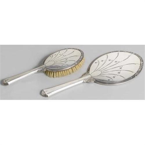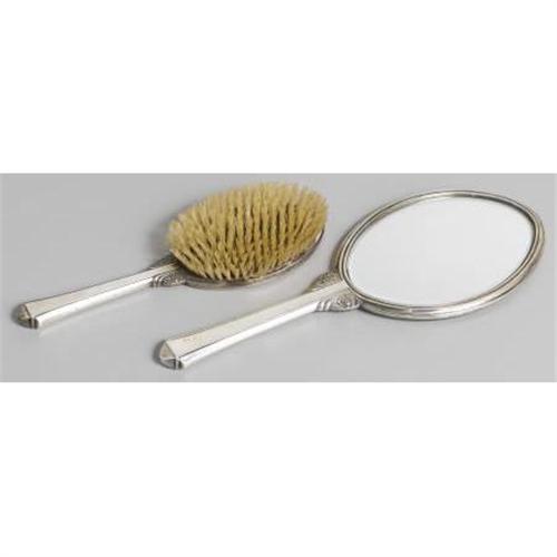 <B>AN AMERICAN SILVER HAND MIRROR AND BRUSH</B></I><BR>Gorham, Providence, RI, Early Twentieth Century<BR><BR>Marked with <I>GORHAM STERLING 16-2</B></I><BR>The mirror: 12.1in. long x 4.6in. wide<BR><BR> <B>Condition Report:</B> Normal signs of wear as appropriate with age.<BR><BR><b>Shipping:</b> Miscellaneous Collectibles, Larg (<a target="_blank" href="http://www.heritageauctions.com/common/shipping.php">view shipping information</a>)