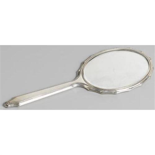 <B>AN AMERICAN SILVER HAND MIRROR</B></I><BR>The McChesney Co., Newark, NJ, Early Twentieth Century<BR><BR>Monogram to the reverse <I>MEW,</B></I> hallmark on the side with <I>STERLING B20-15</B></I><BR>13.3in. long x 5in. wide<BR><BR> <B>Condition Report:</B> Normal signs of wear as appropriate with age; minor scratches to glass of mirror.<BR><BR><b>Shipping:</b> Miscellaneous Collectibles, Larg (<a target="_blank" href="http://www.heritageauctions.com/common/shipping.php">view shipping information</a>)