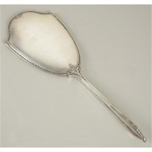 <B>AN AMERICAN SILVER HAND MIRROR</B></I><BR>Maker unknown, Early Twentieth Century<BR><BR>Marked on the front <I>STERLING</B></I><BR>13.7in. long x 4.6in. wide<BR><BR> <B>Condition Report:</B> Normal signs of wear as appropriate with age.<BR><BR><b>Shipping:</b> Miscellaneous Collectibles, Larg (<a target="_blank" href="http://www.heritageauctions.com/common/shipping.php">view shipping information</a>)