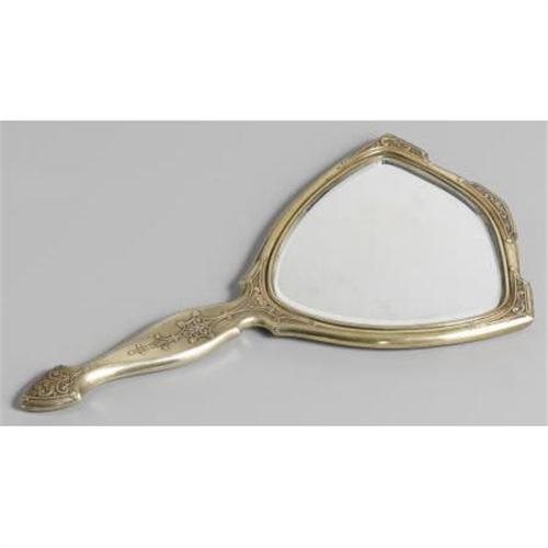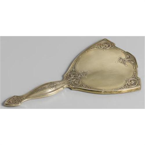 <B>AN AMERICAN SILVER HAND MIRROR</B></I><BR>Foster & Bailey, Providence, RI, Late Nineteenth Century<BR><BR>Gilt finish, hallmark on the side with <I>STERLING 4282</B></I><BR>11.8in. long x 6.3in. wide<BR><BR> <B>Condition Report:</B> Normal signs of wear as appropriate with age; minor dent to reverse.<BR><BR><b>Shipping:</b> Miscellaneous Collectibles, Larg (<a target="_blank" href="http://www.heritageauctions.com/common/shipping.php">view shipping information</a>)