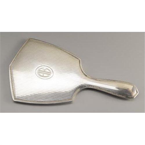 <B>An American Silver Hand Mirror<BR></B></I>Wm. B. Kerr & Co., Newark, NJ<BR>Late Nineteenth Century<BR>Monogram to the reverse <I>HE</B></I>, hallmark to the side with <I>STERLING 5400-2AH <BR></B></I>11.1 inches high x 5.7 inches wide<BR> <B>Condition Report:</B> Normal signs of wear as appropriate with age, the weight in the handle has possibly come loose.<BR><BR><b>Shipping:</b> Miscellaneous Collectibles, Larg (<a target="_blank" href="http://www.heritageauctions.com/common/shipping.php">view shipping information</a>)