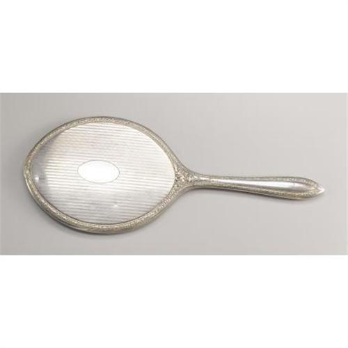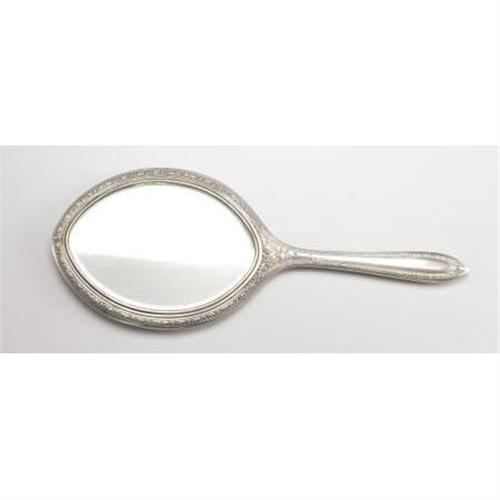 <B>An American Silver Hand Mirror<BR></B></I>Alvin Corp., Providence, RI <BR>Early Twentieth Century<BR>Marked on the side <I>STERLING ALVIN <BR></B></I>12.6 inches high x 4.8 inches wide<BR> <B>Condition Report:</B> Two minor pin dents and superficial scratching to reverse.<BR><BR><b>Shipping:</b> Miscellaneous Collectibles, Larg (<a target="_blank" href="http://www.heritageauctions.com/common/shipping.php">view shipping information</a>)