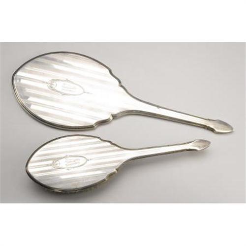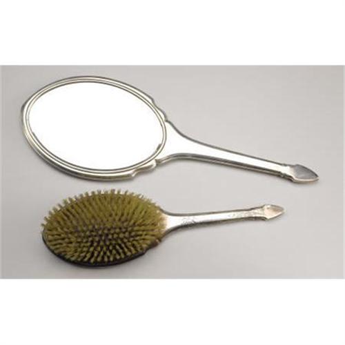 <B>An American Silver Hand Mirror and Brush<BR></B></I>Watson Co., Attleboro, MA<BR>Early Twentieth Century<BR>Monogram to the reverse <I>W</B></I>, hallmark to the side with <I>STERLING 7902/12 <BR></B></I>13.6 inches high x 4.7 inches wide<BR> <B>Condition Report:</B> Normal signs of wear as appropriate with age.<BR><BR><b>Shipping:</b> Miscellaneous Collectibles, Larg (<a target="_blank" href="http://www.heritageauctions.com/common/shipping.php">view shipping information</a>)