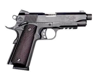 ATATIGFX45K PRODUCT DETAILS FAMILY:1911 Style Pistol Series MODEL:FX45 1911 Tactical TYPE:Semi-Auto Pistol ACTION:Single Action FINISH:Matte Black STOCK/FRAME:Steel Frame SPC FEATURE:Threaded Barrel Model CALIBER/GAUGE:45 ACP CAPACITY:8+1 BARREL:4.75" ADDL INFO:Threaded BBL ADDL INFO:Picatinny Rail
