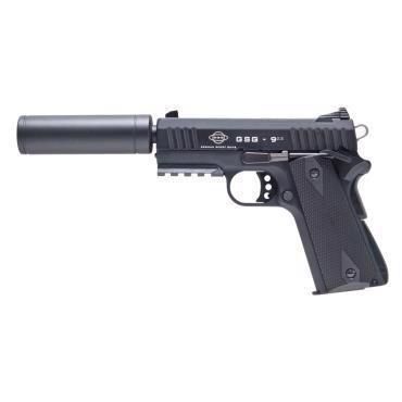 ATGER2210GSG9SF PRODUCT DETAILS FAMILY:1911 Style Pistol Series MODEL:GSG 1911 TYPE:Semi-Auto Pistol ACTION:Semi-Auto FINISH:Blue STOCK/GRIPS:Black Plastic CALIBER/GAUGE:22 LR CAPACITY:10+1 BARREL:3.2" SIGHTS:Fixed ADDL INFO:Faux Suppressor