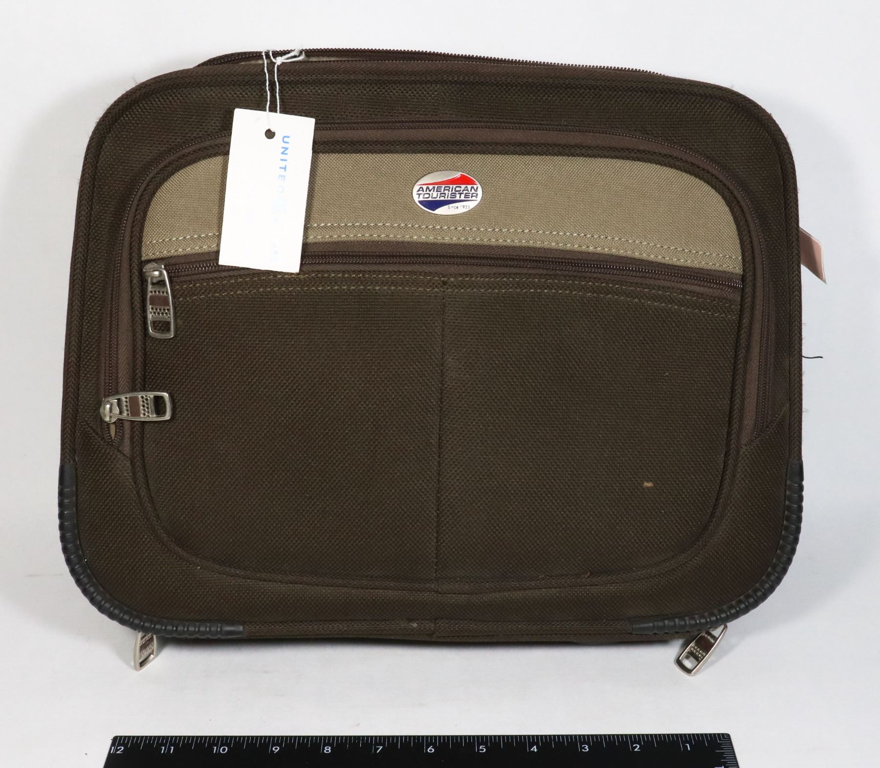 SHOULDER STRAP IN FRONT POCKET. APPROX 15" X 12" X 7"