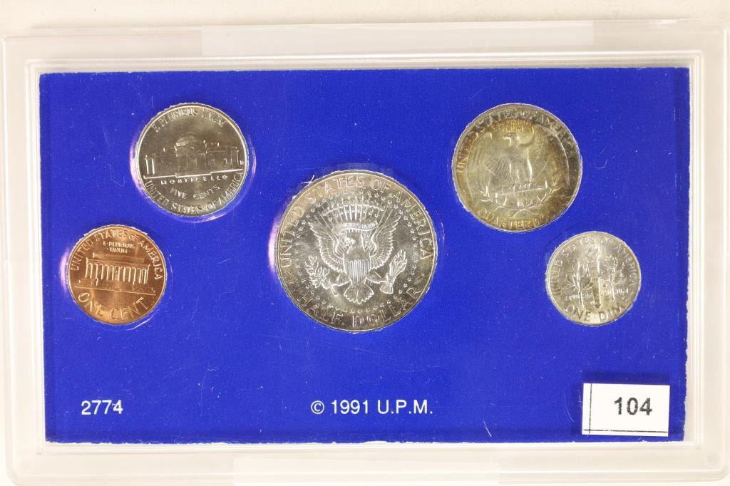 1964 LINCOLN CENT, 1957-D JEFFERSON NICKEL, 1964-D ROOSEVELT SILVER DIME, 1964 WASHINGTON SILVER QUARTER AND 90% SILVER 1964 KENNEDY HALF DOLLAR , IN HARD PLASTIC CASE